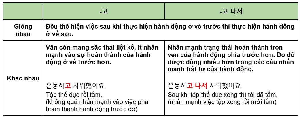 4. So sánh 고 & 고 나서
