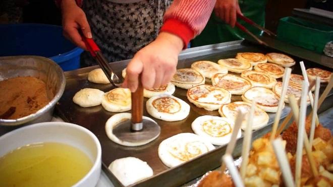 Hotteok là loại bánh chiên có nhân đường nâu, đậu phộng, quế và các loại hạt. Khi cắn vào, nhân bánh tan chảy, tạo cảm giác ngọt ngào và ấm áp.