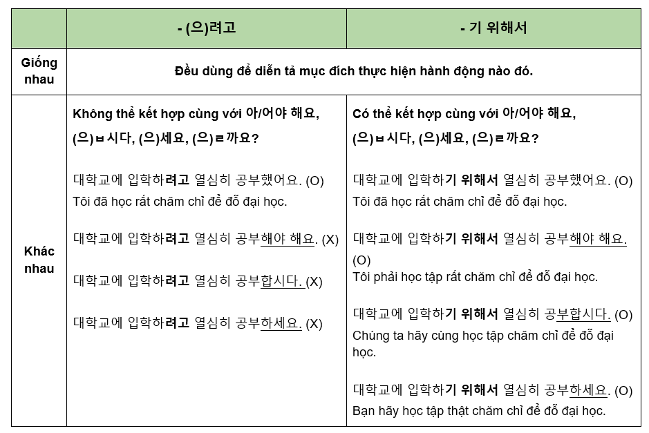5. So sánh ‘- (으)려고’ & ‘-기 위해서’