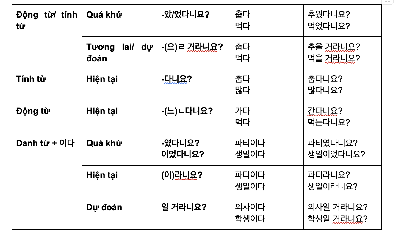 4. Khi lặp lại lời đối phương, câu trực tiếp được dùng ở hình thức nào thì câu trích dẫn gián tiếp đứng trước -다니요? sẽ có hình thức như vậy.