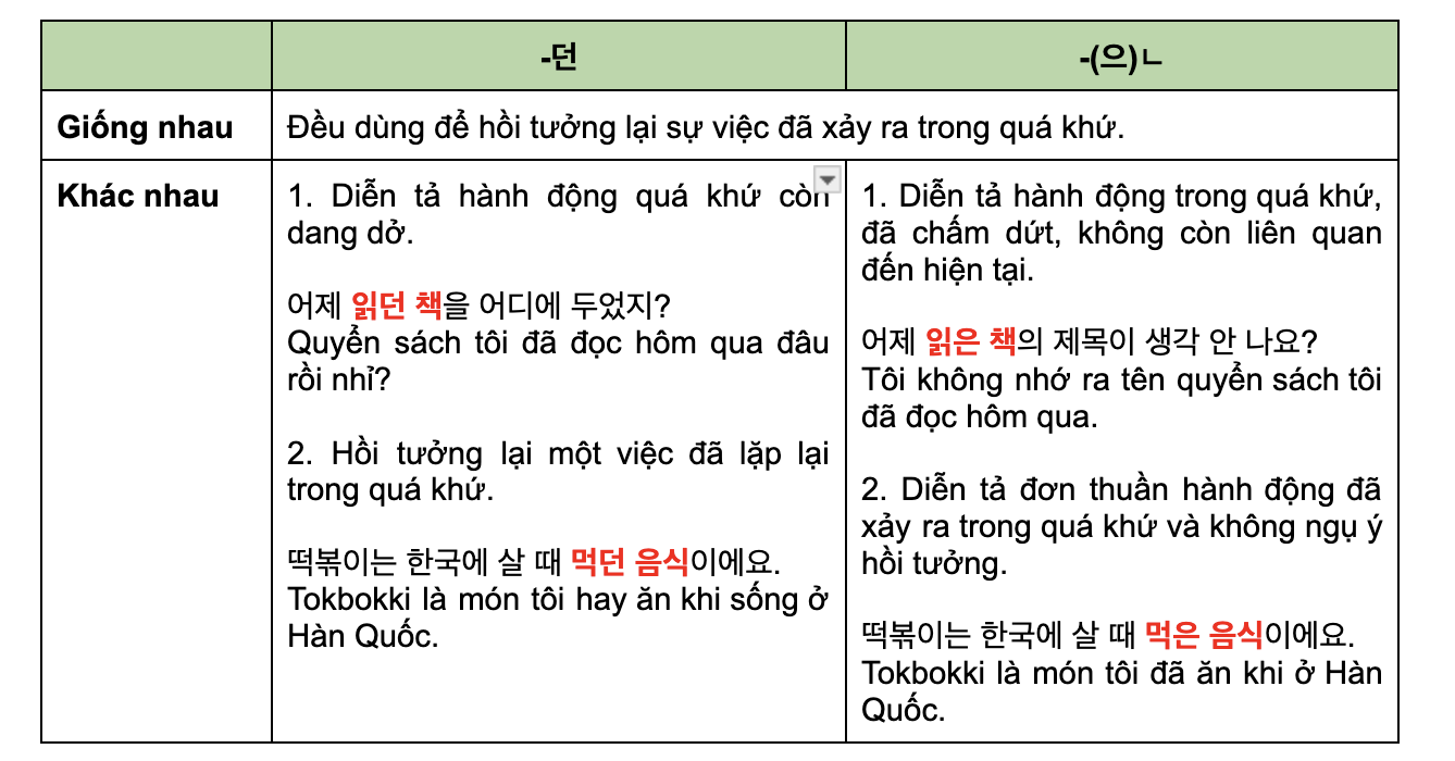 2. Có thể sử dụng cấu trúc này để hồi tưởng những sự việc đã bắt đầu xảy ra trong quá khứ nhưng vẫn chưa kết thúc. Trong trường hợp này, thường sử dụng với các cụm từ xác định chỉ thời gian trong quá khứ như 지난달, 지난주, 어제, 아까, 저번에.