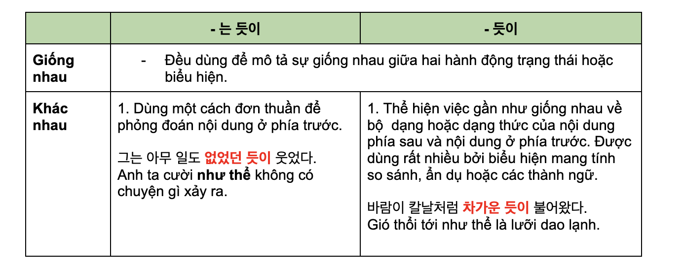 3. So sánh ‘는 듯이’ & ‘듯이’.