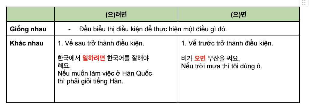 2. So sánh ‘(으)려면’ & ‘(으)면’