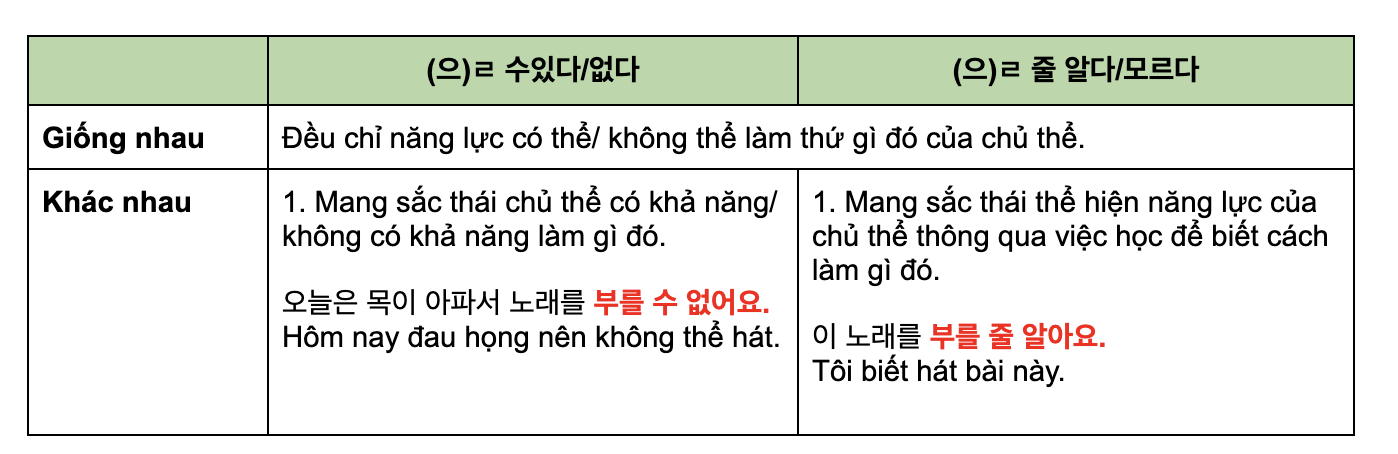 5. So sánh (으)ㄹ 수있다/없다 & (으)ㄹ 줄 알다/모르다