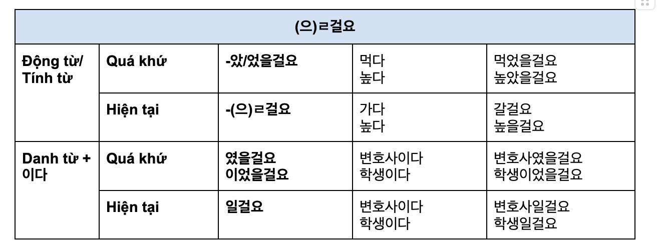 5. So với ‘(으)ㄹ 거예요’ thì ‘(으)ㄹ걸요’ có mức độ suy đoán thấp hơn.