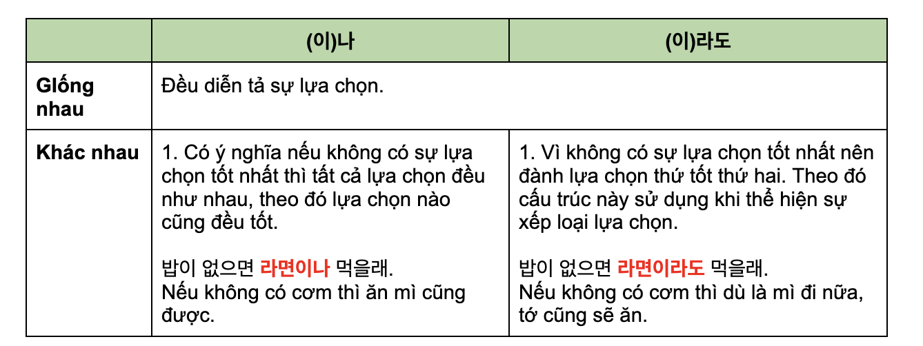 5. So sánh ‘(이)나’ & ‘(이)라도