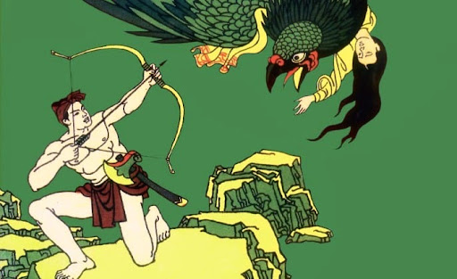 Trong hang, Thạch Sanh tiêu diệt đại bàng, cứu Thái tử Thủy Tề và được vua Thủy Tề tặng đàn thần, đưa trở về trần thế.