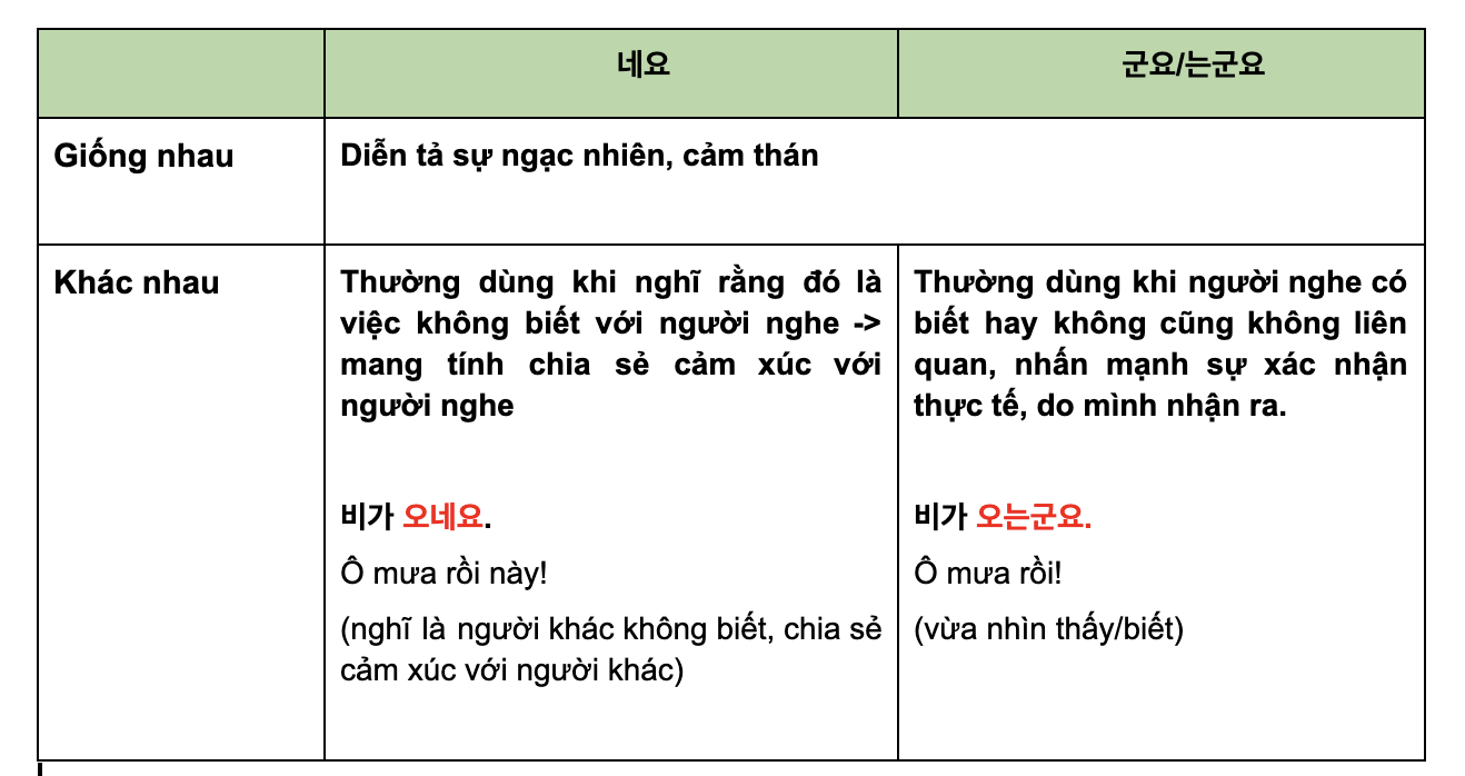 4. Khi dùng với người dưới mình hoặc hoặc với bạn bè thân thiết, hoặc nói một mình có thể dùng 구나.