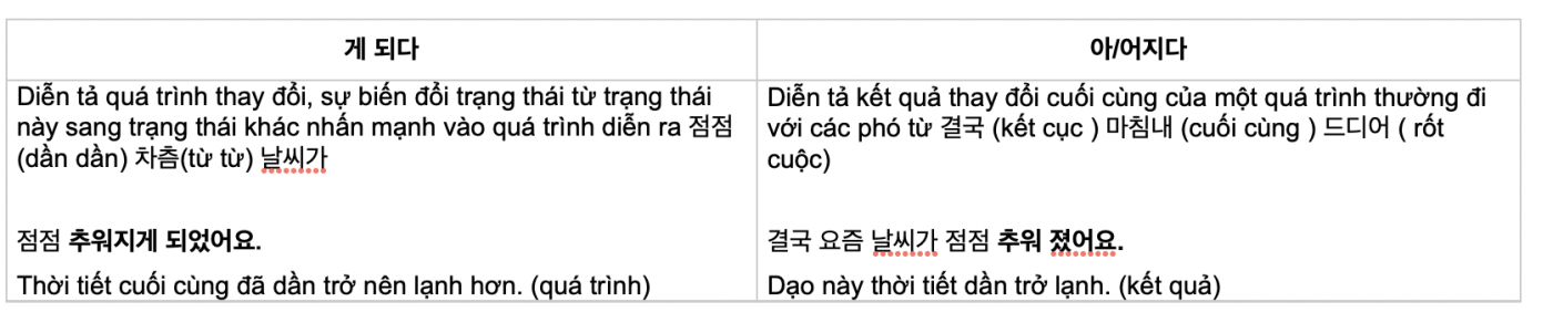 2. Phân biệt với ‘Tính từ +아/어지다‘.