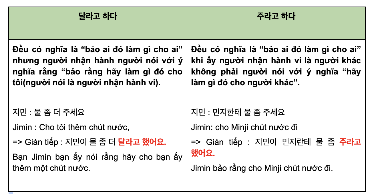 3. Phân biệt 달라고 하다 và 주라고 하다.