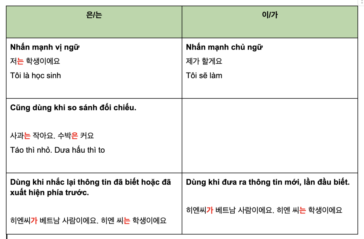 **Dùng 이/가 khi là thông tin mới, chưa nhắc ở phía trước hoặc muốn nhấn mạnh chủ ngữ