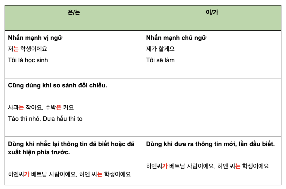 3. 은/는 có thể dùng sau 에,에서 nhằm nhấn mạnh.